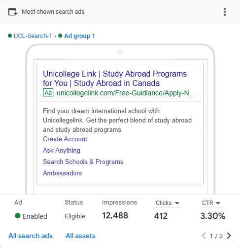 Primary Focus: Google Ads PPC campaigns targeting prospective international students