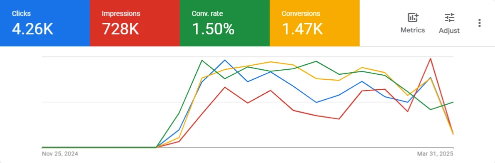 - 1,470 Total Conversions – Substantial lead generation volume